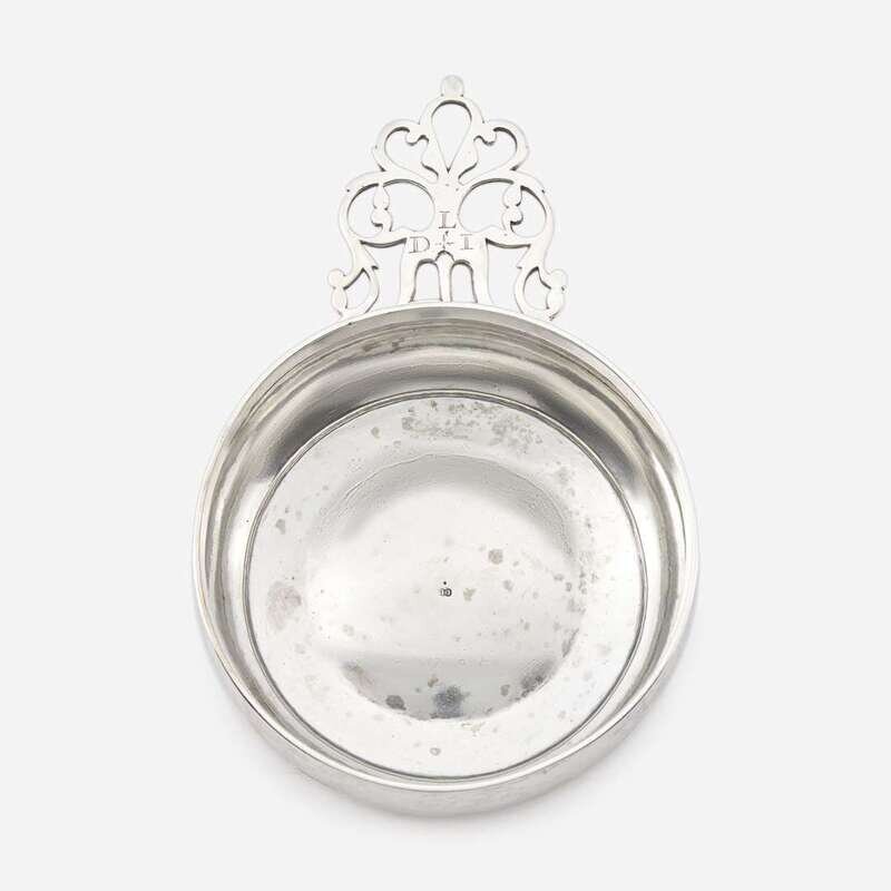 Pierced handle engraved with monogram "DLI," marked to center of well.