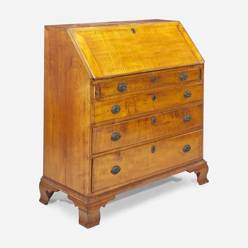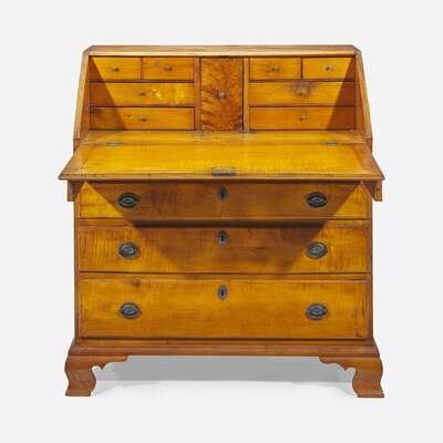 A Chippendale carved tiger maple slant-front desk late 18th century