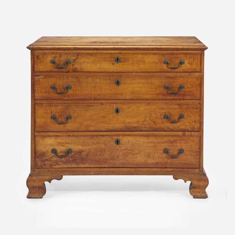 A Chippendale carved tiger maple chest of drawers Pennsylvania, late 18th century