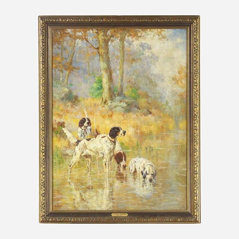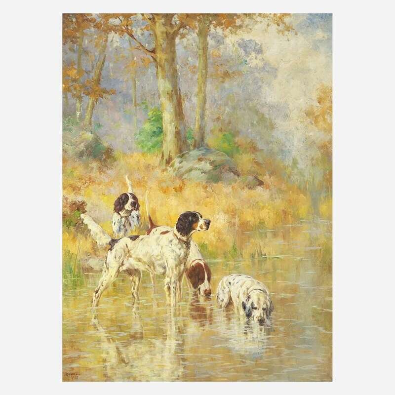 Percival Leonard Rosseau (American, 1859–1937) Setters in a Brook Pool