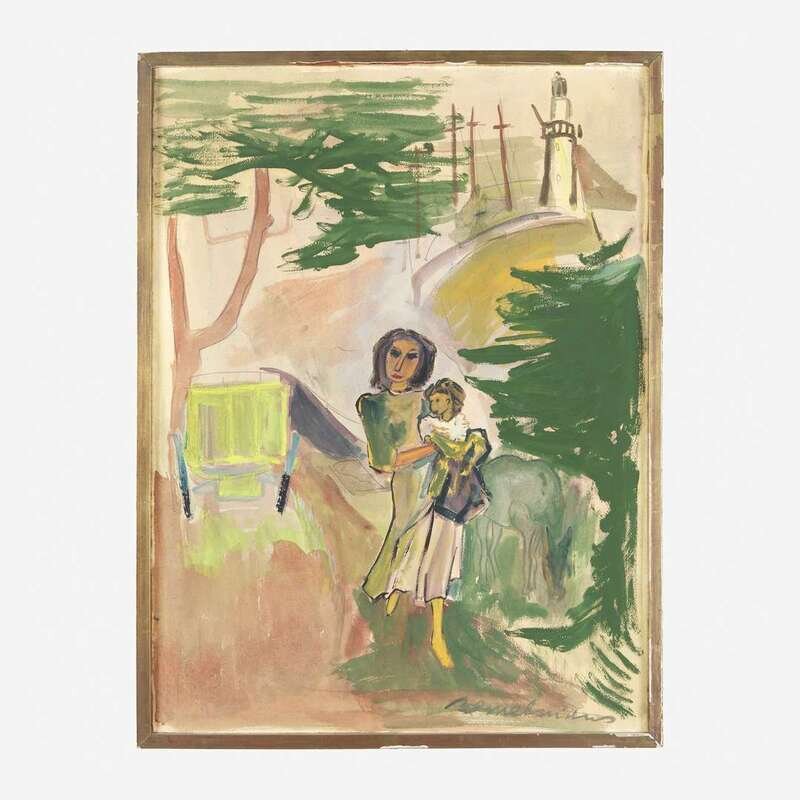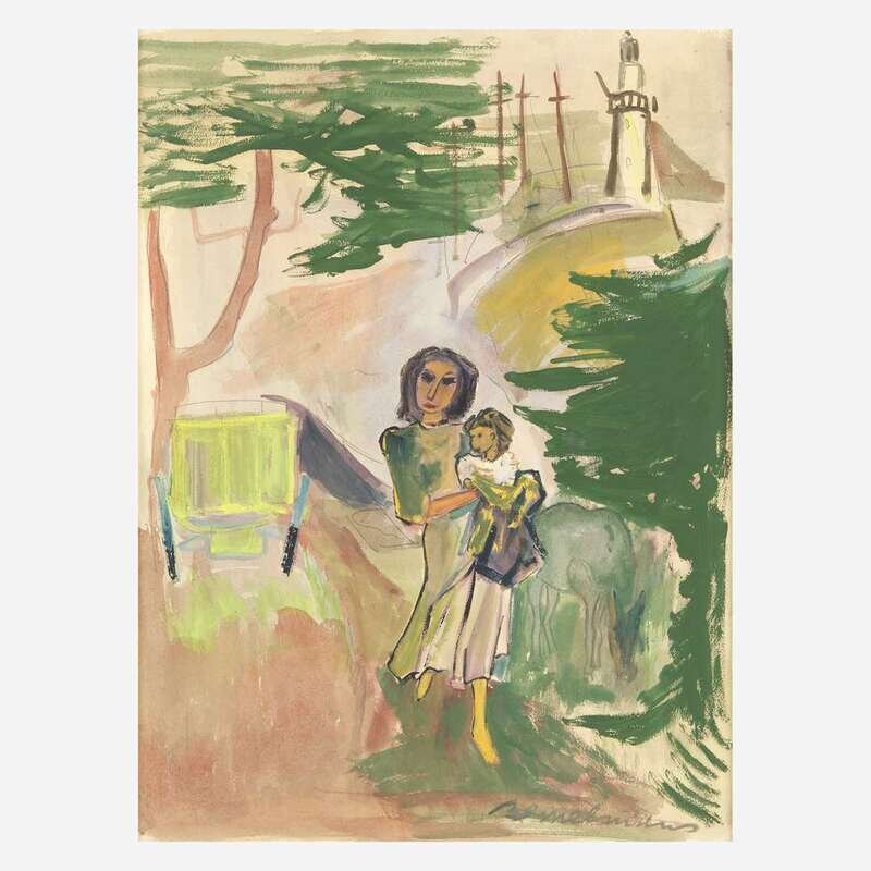 Ludwig Bemelmans (American, 1898–1962) Gypsies (Mother and Child with Donkey by the Lighthouse)