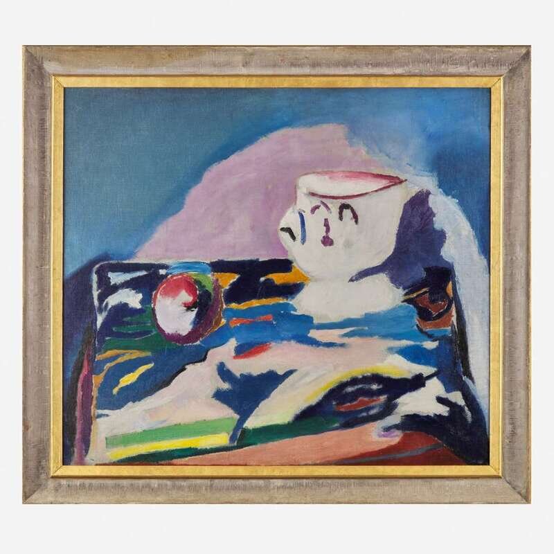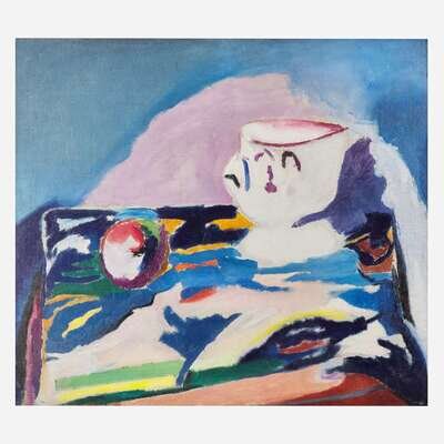 Arthur Beecher Carles (American, 1882-1952) Still Life with Pitcher and Fruit on Flowered Cloth