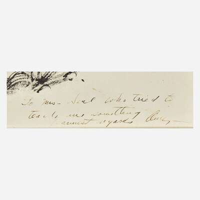 Signed 'ANDREW WYETH' bottom left; also dedicated and signed 'To Mrs. Seal who tried to/teach me something/Warmest regards, Andy' bottom right; also inscribed with title verso, pen and ink wash with elements of drybrush technique on paper laid down to board