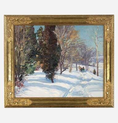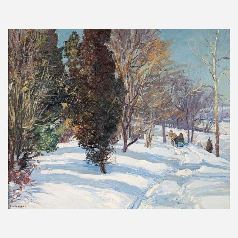 Edward Willis Redfield (American, 1869–1965) Sleighing by the River near Centre Bridge