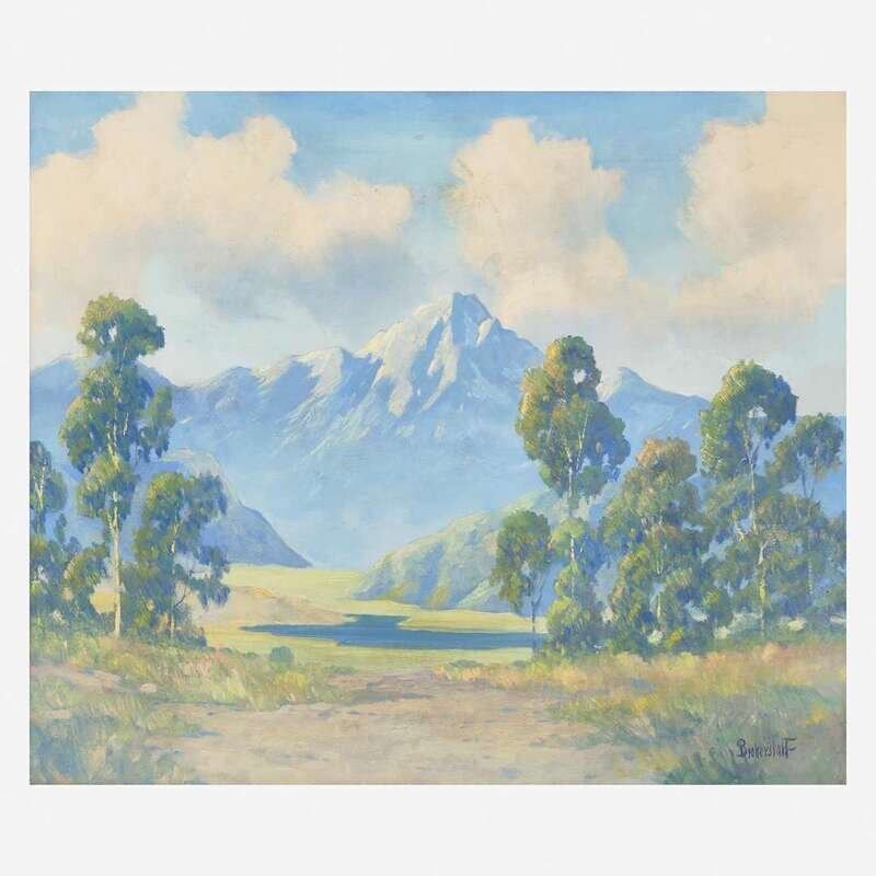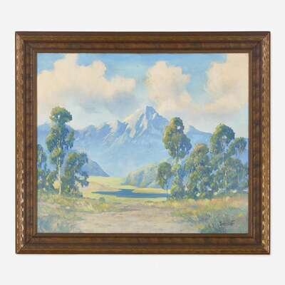 George Sanders Bickerstaff (American, 1893-1954) Untitled (Mountain with Trees and River)