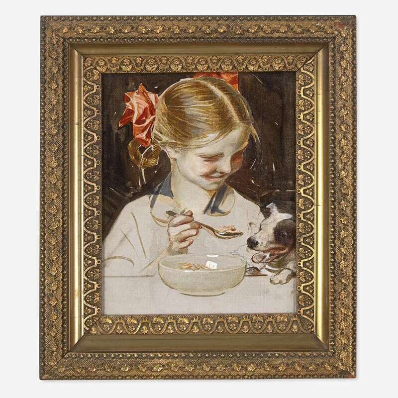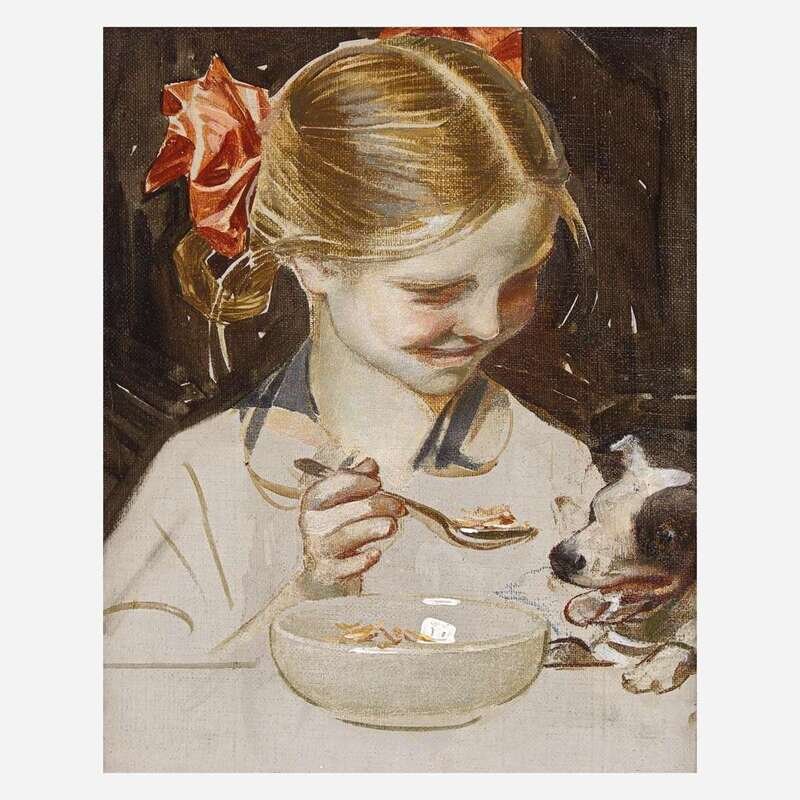 Joseph Christian Leyendecker (American, 1874-1951) Young Girl Feeding Her Dog