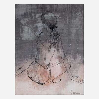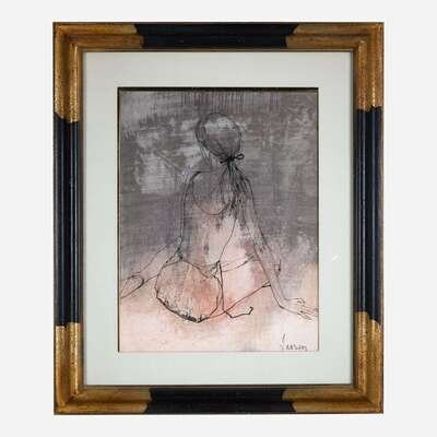 Signed bottom right, oil and ink on paper.