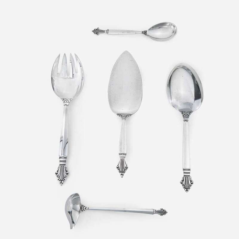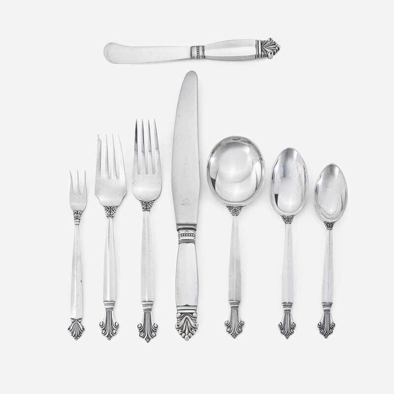 Johan Rohde (Danish, 1856-1935) "Acanthus" Eight-Piece Dinner and Luncheon Service for Twelve, Georg Jensen, Denmark, Designed 1917, the Present Lot post-1945