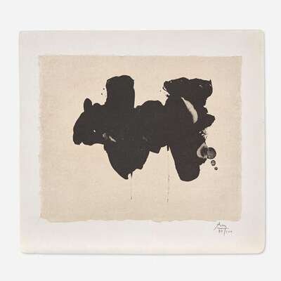 1981, pencil signed and numbered 75/100 (there were also 20 artist's proofs), with full margins, Tyler Graphics Ltd., Bedford, New York, publisher and with their blindstamp. Lithograph from one aluminum plate printed in black; Chine appliqué on handmade and tan Oriental Okawara.