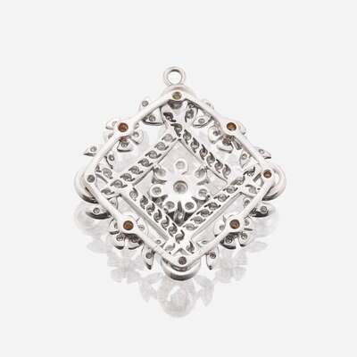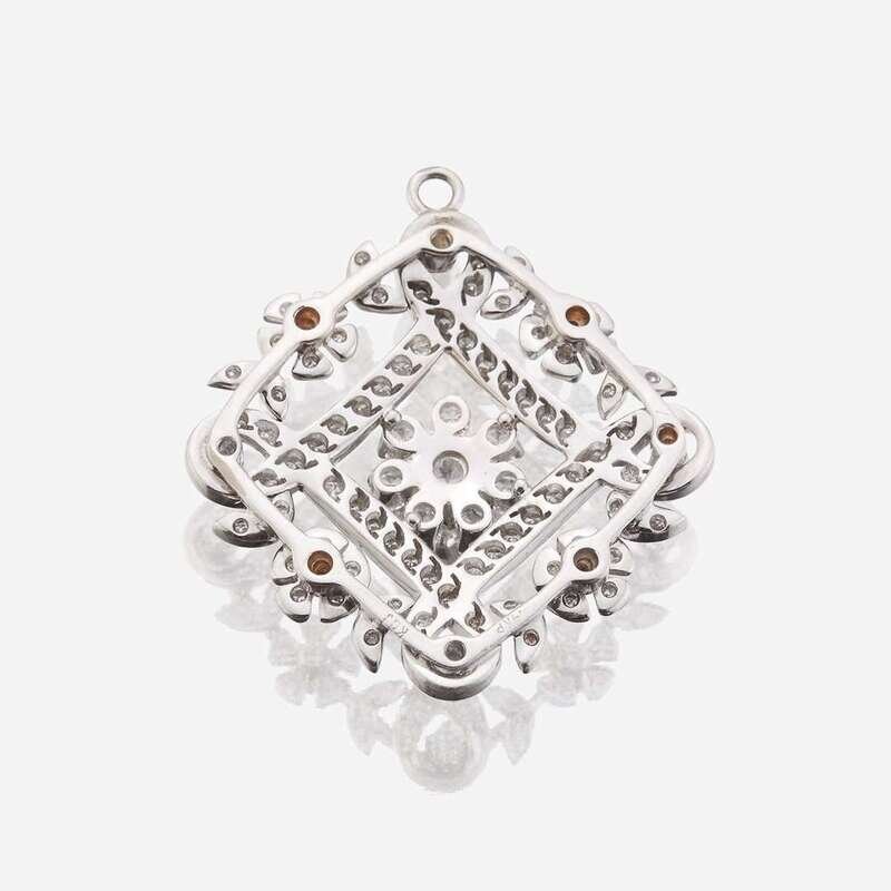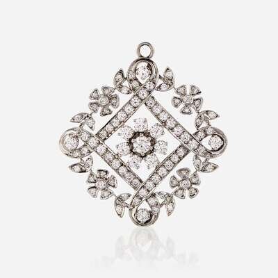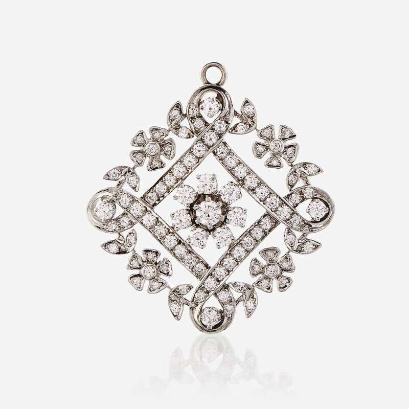 the openwork floral design in fourteen karat white gold plated fourteen karat yellow gold, set throughout with round brilliant-cut diamonds; estimated total diamond weight: 2.50 carats.