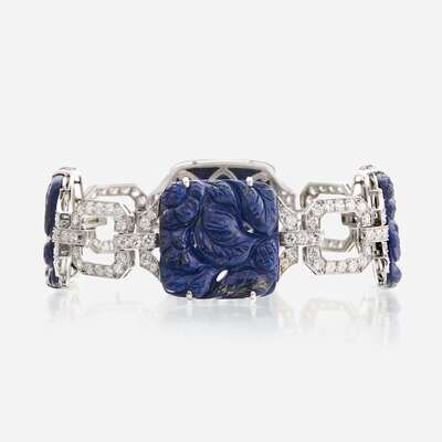 A lapis lazuli, diamond, and eighteen karat white gold bracelet