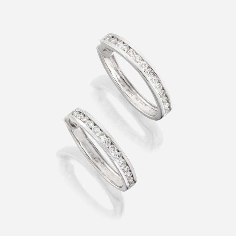 designed as hoops, set to the front with round brilliant-cut diamonds; estimated total diamond weight: 2.00 carats.