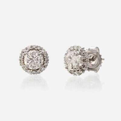 each centering a round brilliant-cut diamond weighing approximately 0.55 carat, surrounded by round brilliant-cut diamonds.