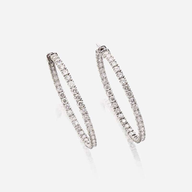 designed as inside-out style hoops set with round brilliant-cut diamonds; estimated total diamond weight: 8.25 carats.