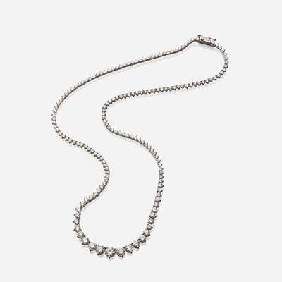 centering a round brilliant-cut diamond weighing approximately 0.45 carat, completed by numerous graduated round brilliant-cut diamonds; estimated total remaining diamond weight: 8.65 carats.