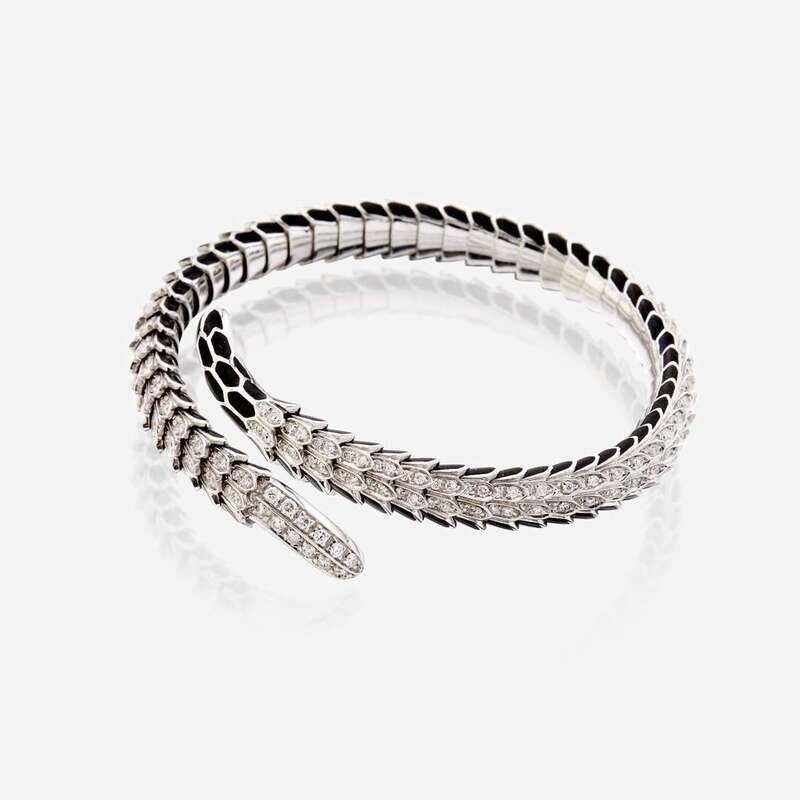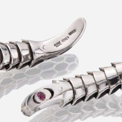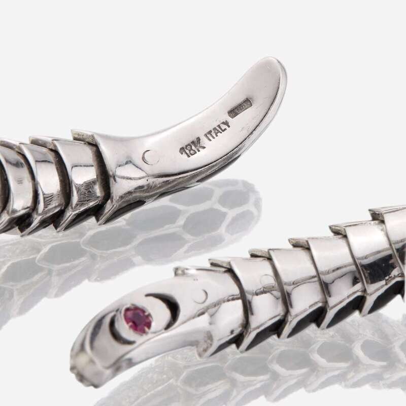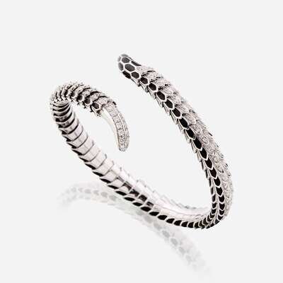 An eighteen karat white gold, diamond, and enamel bangle, Roberto Coin