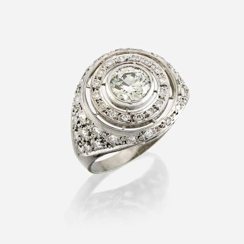 A diamond and eighteen karat white gold ring