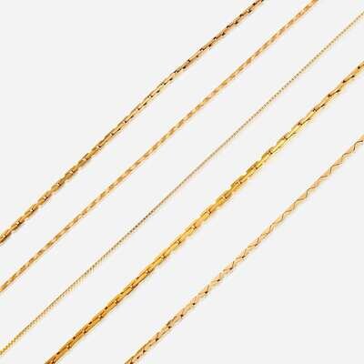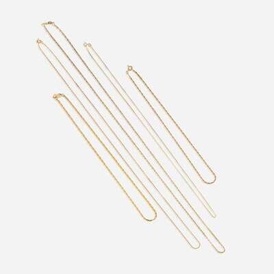 A collection of five fourteen karat gold necklaces