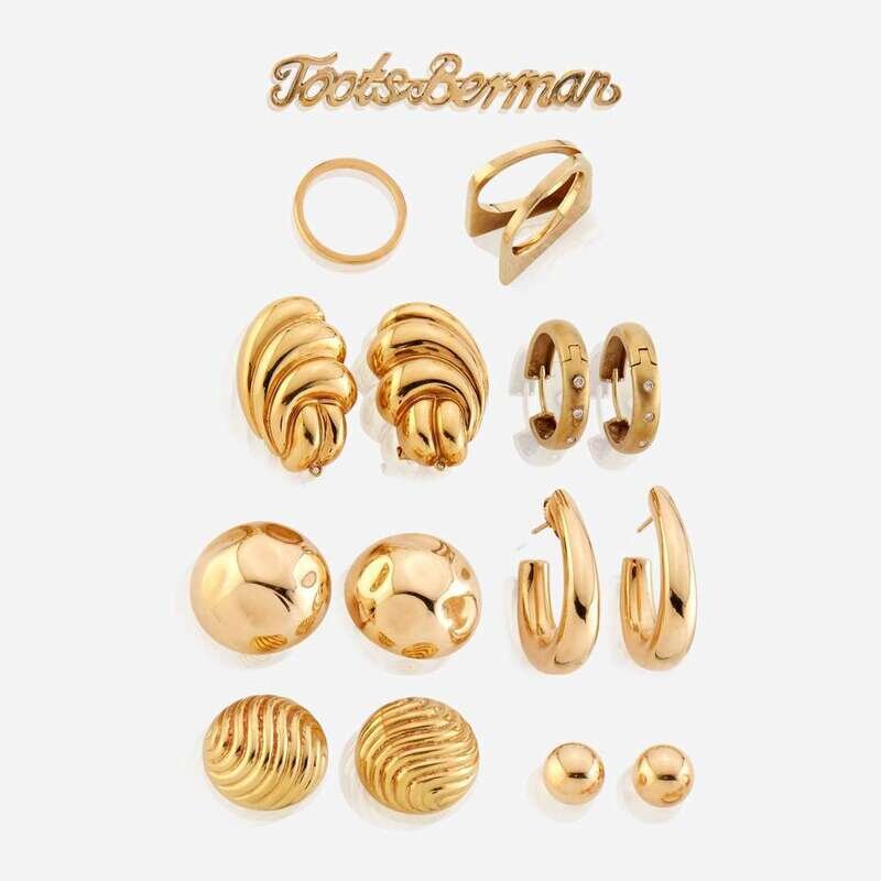 including one fourteen karat gold ring, four pairs of fourteen karat gold earrings, one pair of fourteen karat gold and round brilliant-cut diamond earrings, one fourteen karat gold brooch, one eighteen karat gold ring, and one pair of eighteen karat gold earrings.