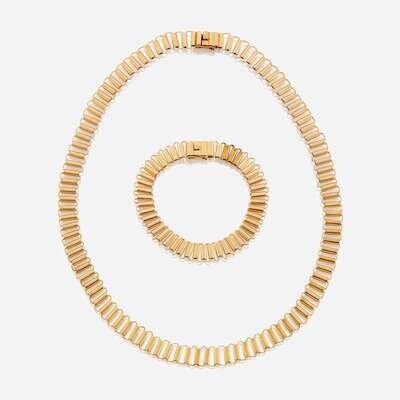 An eighteen karat gold necklace and matching bracelet