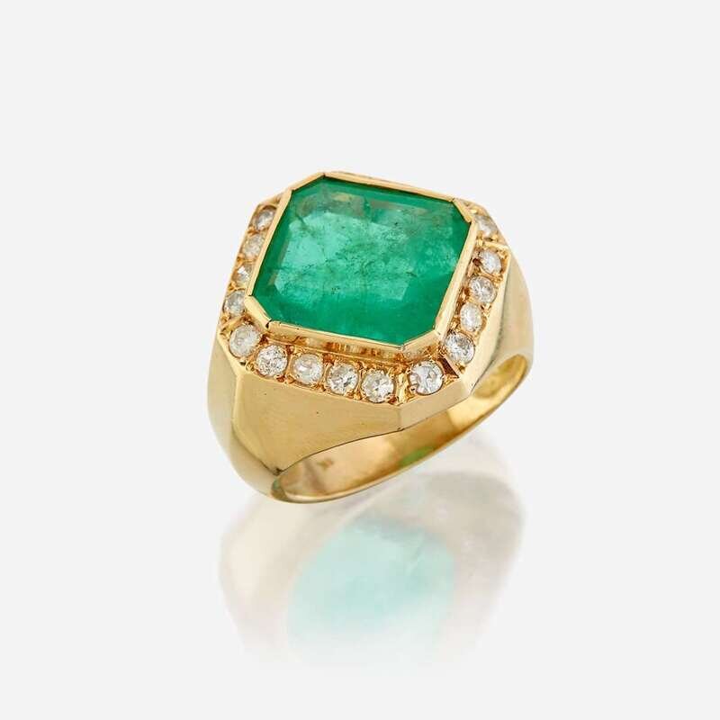An emerald, diamond, and eighteen karat gold ring