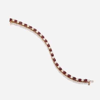 the flexible line bracelet designed as alternating circular-cut rubies and round brilliant-cut diamonds; estimated total diamond weight: 5.00 carats.