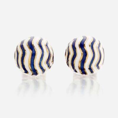 A pair of eighteen karat gold and enamel cufflinks, David Webb