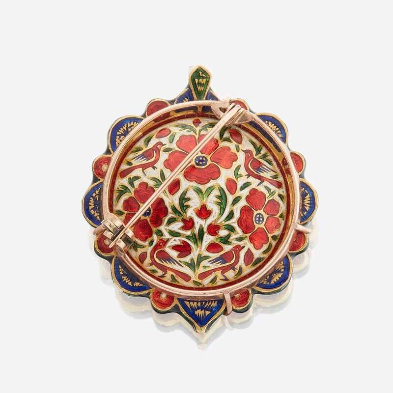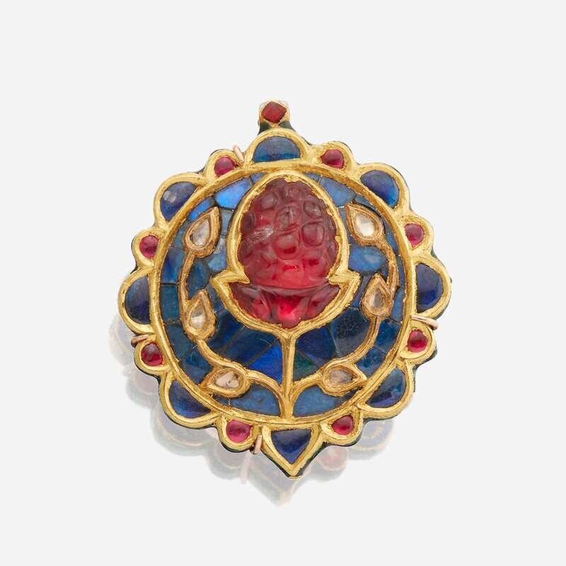 A Jaipur enamel, ruby, sapphire, diamond, and gold brooch