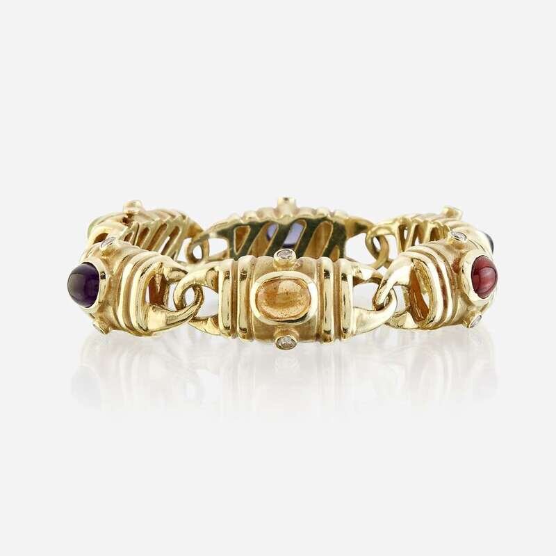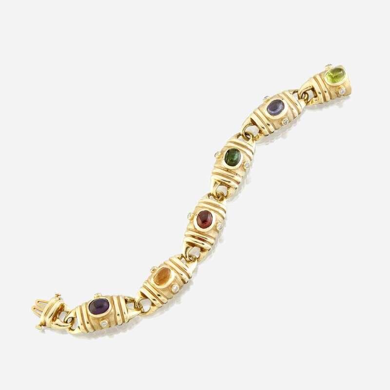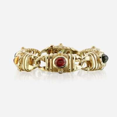 A fourteen karat gold and gem-set bracelet