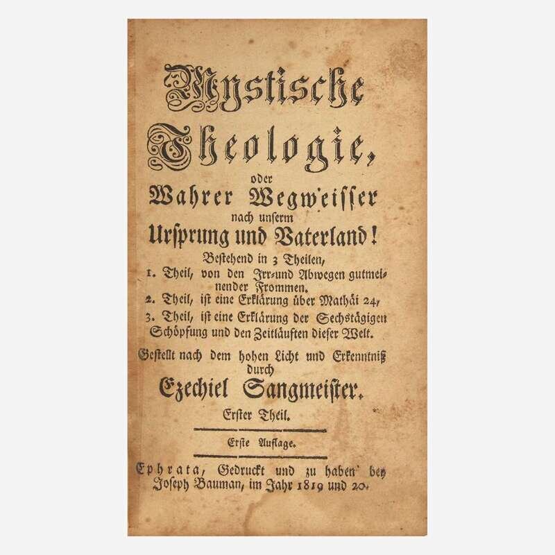 [Pennsylvania] [Ephrata] Sangmeister, Ezechiel Mystische Theologie, oder Wahrer Wegweisser nach unserm Ursprung und Baterland!