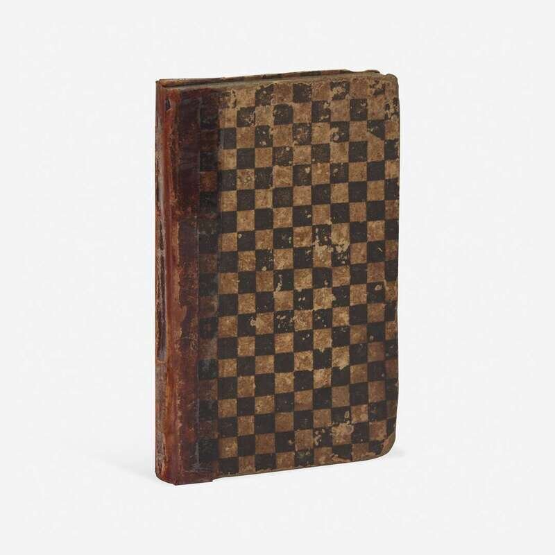 Ephrata, (Pennsylvania): Joseph Bauman, 1819-20. First edition. Four parts in one volume. 12mo. 168 pp. Illustrated with rare large folding chart. Original quarter calf over checkered paste paper-covered boards (another copy of the same title was sold in 2003 with the same boards), boards and extremities rubbed, spine crudely reinforced with sello tape; top edge stained blue, other edges trimmed; scattered foxing and soiling to text; foxing to folding chart; scattered creasing to corners; book-plate on front paste-down.