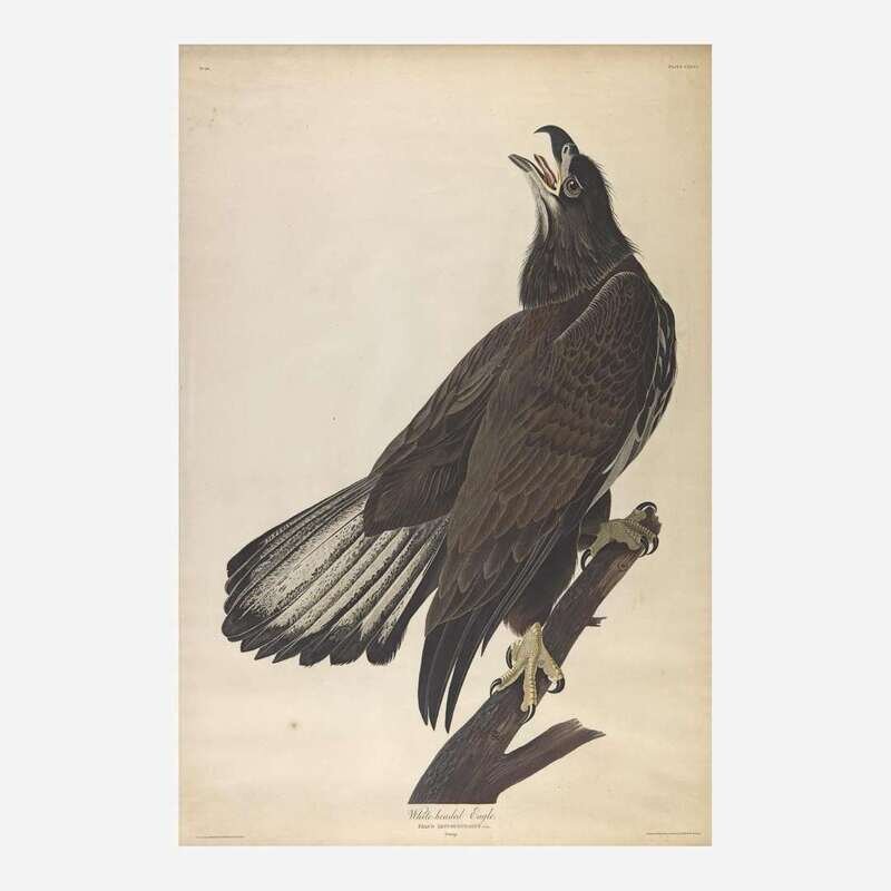London: R. Havell, (1834). Hand-colored engraving with aquatint and etching, on J. Whatman Turkey Mill watermarked paper, dated 1834. Engraved, printed, and colored by R. Havell after J.J. Audubon’s watercolor. Elephant folio, 39 1/2 x 26 5/8 in. (100 x 67 cm). Sheet toned; foxing along most edges and at corners; scattered spotting in image; bottom left corner lightly worn; very slightly trimmed along edges. In frame, 42 1/2 x 28 3/4 in. (108 x 73 cm).