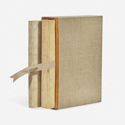 (Hammersmith: The Doves Press, 1906-10). In two volumes. First edition (first part, one of 300 copies on paper; second part, one of 250 copies on paper). Small 4to. 260, (1); 373, (1) pp. Printed in red and in black. Original limp vellum, stamped in gilt; some discoloration to vellum, as usual; in grey cloth leather-entry slip case. Tidcombe DP10 and DP20; Tompkinson pp. 55-56, 10 and 20