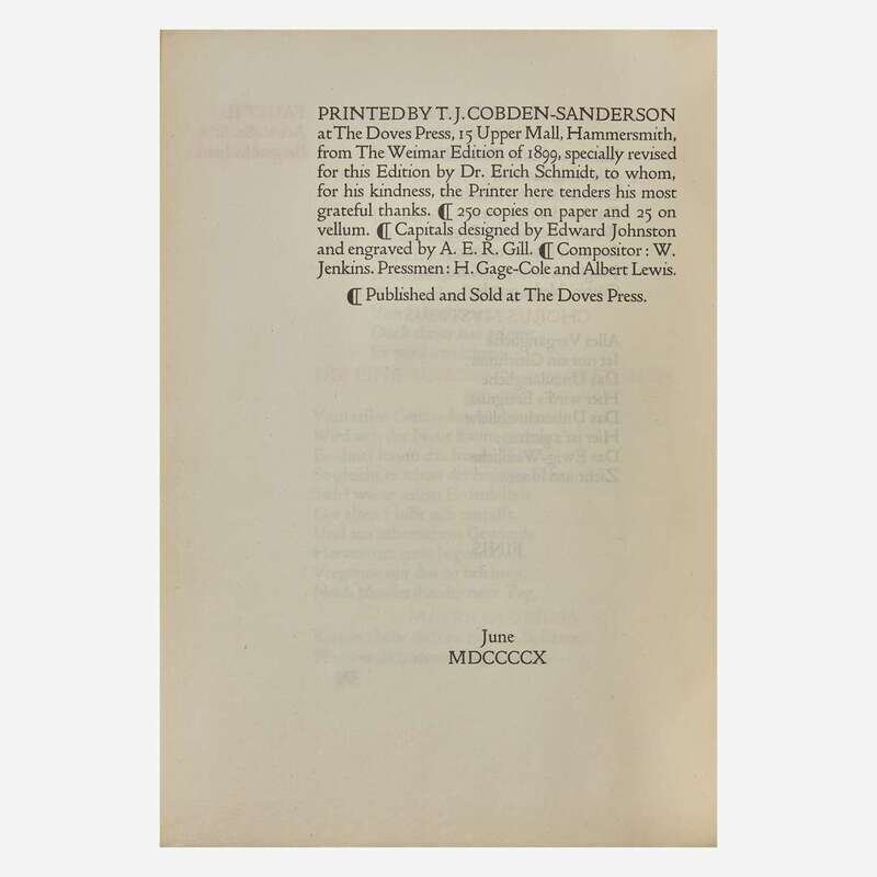 [Private Press] [Doves Press, The] Goethe, Johann Wolfgang von Faust eine tragoedie von Goethe