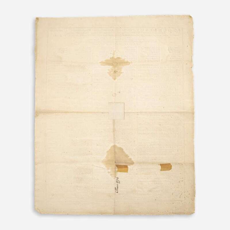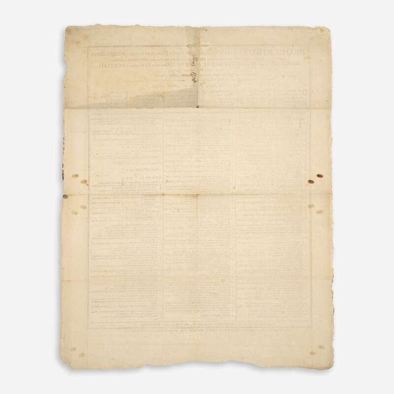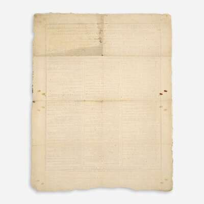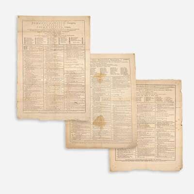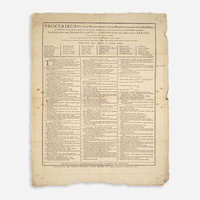 Boston: Edward Eveleth Powars & Nathaniel Willis/Thomas & John Fleet, 1776-1783. Group of three American Revolution-era printed broadsides for Harvard University's graduating classes of 1776, 1778, and 1783; printed in Latin. 21 x 17 in. (533 x 432 mm); 22 x 18 in. (559 x 457 mm); 25 x 17 1/4 in. (635 x 438 mm). Scattered wear and small losses; some dampstaining at center of 1776 broadside.
