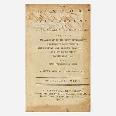 "The first history of New Jersey, printed by James Parker on a press owned by Benjamin Franklin, formerly used in Antiqua by Benjamin Mecom, and moved temporarily from New York to Burlington for the printing of this book." (Felcone 243).