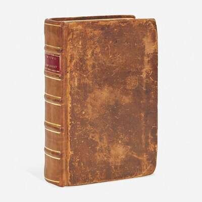 Burlington, in New Jersey: Printed and sold by James Parker, Sold also by David Hall, in Philadelphia, 1765. First edition. 8vo. x, 573, (1) (errata) pp. Contemporary full calf, rebacked, stamped in gilt, red morocco spine label, boards and extremities rubbed; all edges trimmed; remnants of removed label on front paste-down; contemporary ownership signature of James Whitall, Jr., on verso of title-page and on p. 1, additional old ownership signature on verso of title-page; soiling and toning to text throughout; text leaves trimmed close, shaving some letters in printed shoulder notes; scattered underlining in pencil. Felcone 243; Evans 10166; Howes S 661; Miller 853