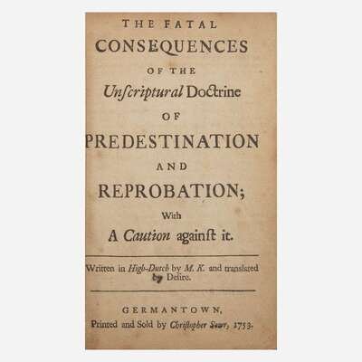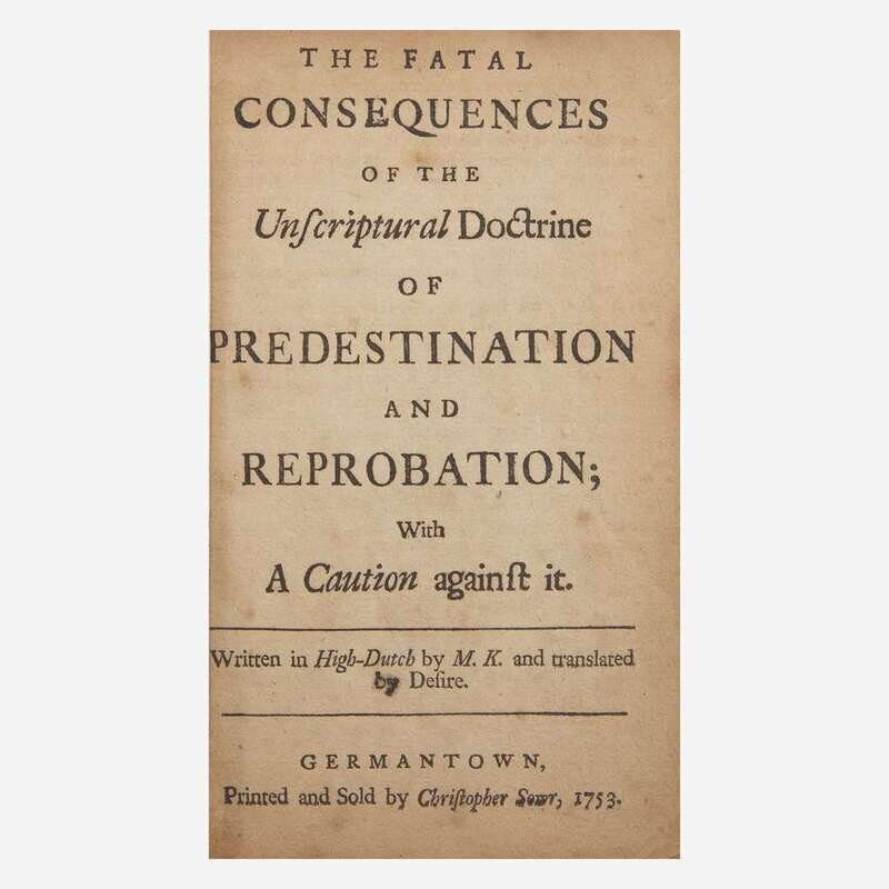 [Americana] [Sauer, Christoph] The Fatal Consequences of the Unscriptural Doctrine of Predestination and Reprobation; with a Caution against it