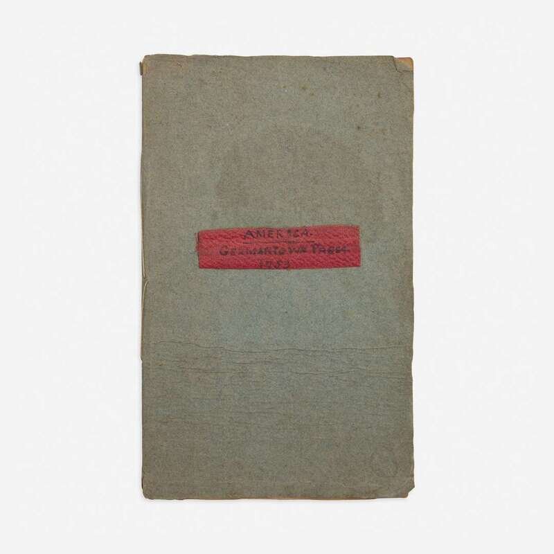 Germantown: Printed and Sold by Christopher Sowr, 1753. First edition. 12mo. 14 pp. Printed in English. Full limp wrappers, cloth title label mounted to front wrapper, wrappers toned; all edges trimmed; ownership signature on front free endpaper. Evans 7032; Sabin 80879