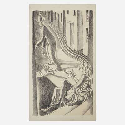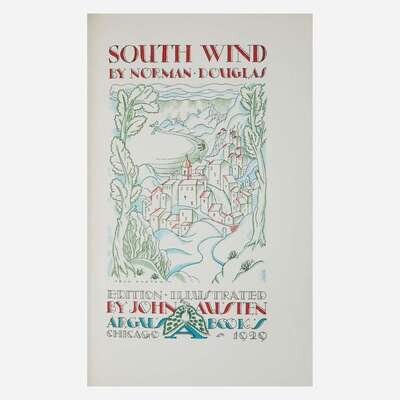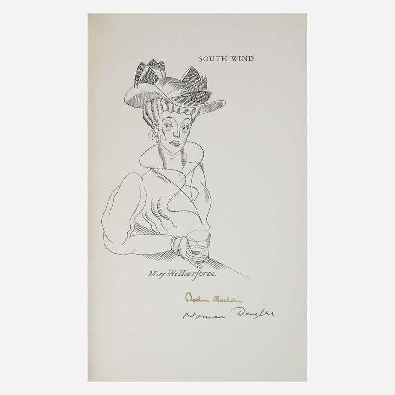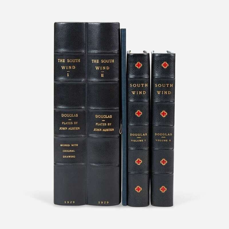 Chicago: (Peacock Press for) Argus Books, 1929. In two volumes. 8vo. First and limited edition thus, one of only 40 copies (this copy unnumbered) signed by illustrator John Austen and author Norman Douglas and including an original illustration by Austen--"Miss Wilberforce"--on the half-title. Additionally this copy also includes an uncalled for original illustration, also titled "Miss Wilberforce" (printed opposite p. 198 in first volume), signed by Austen; 10 3/4 x 6 1/4 in. (273 x 159 mm); in blue cloth chemise. Bound in three-quarter navy blue morocco with red leather onlay to spines over patterned linen-covered boards; patterned endpapers; top edges gilt, other edges trimmed; in quarter navy blue morocco slip case and chemises. A fine set.