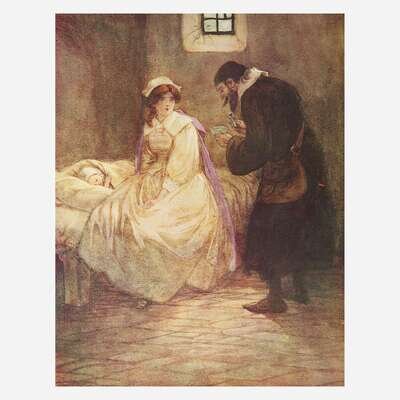 London: Methuen & Company Limited, (1920). First edition thus. 4to. Profusely illustrated with 31 mounted color plates by Hugh Thomson. Bound in full black morocco, elaborately gilt, with scarlet leather onlay of the letter "A" on front board; marbled endpapers; all edges gilt; original decorated cloth covers bound in at rear; enclosed in a linen slip case and chemise. A fine copy.