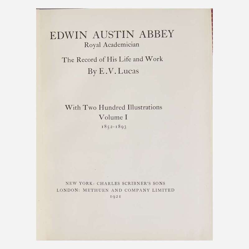 New York: Charles Scribner's Sons/London: Methuen and Company Limited, 1921. In two volumes. First and limited edition, one of 50 copies with an original drawing by Abbey. Profusely illustrated with 200 illustrations by Abbey. Bound in full light brown morocco, elaborately gilt, full light brown and dark green morocco doublures; moire silk endleaves; top edges gilt, other edges untrimmed; in slip case; by Bennett.