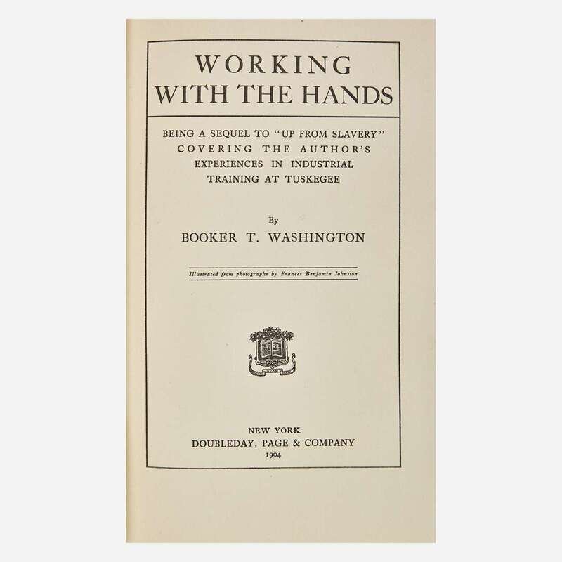 A group of two handsome first editions, recounting Washington's life from slave to schoolmaster in Up From Slavery, and its sequel, Working with the Hands, covering his experience in industrial training at the Tuskegee Institute.