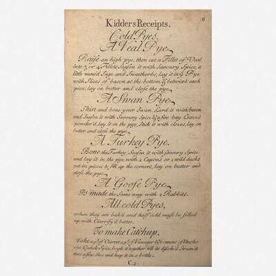 A scarce cookbook, likely produced by pastry master Edward Kidder (1665/66-1739) for his students, in conjunction with one of his cooking classes, at one of the earliest cooking schools in England to include the instruction of baked goods.
