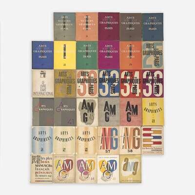 A handsome collection of Charles Peignot's highly influential graphic design periodical. Throughout its history, this legendary periodical was at the forefront of modernist design and covered a variety of subjects including art, photography, and advertising, and established the benchmark for its production quality. Only published from September 1927 to May 1939, Arts et metiers graphiques was issued bimonthly, and ceased production due to the outbreak of World War II.