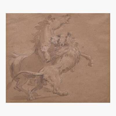 Attributed to Jean-Baptiste Oudry (French, 1686–1755) Lion Attaquant un Cheval