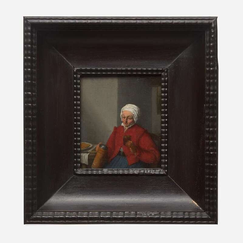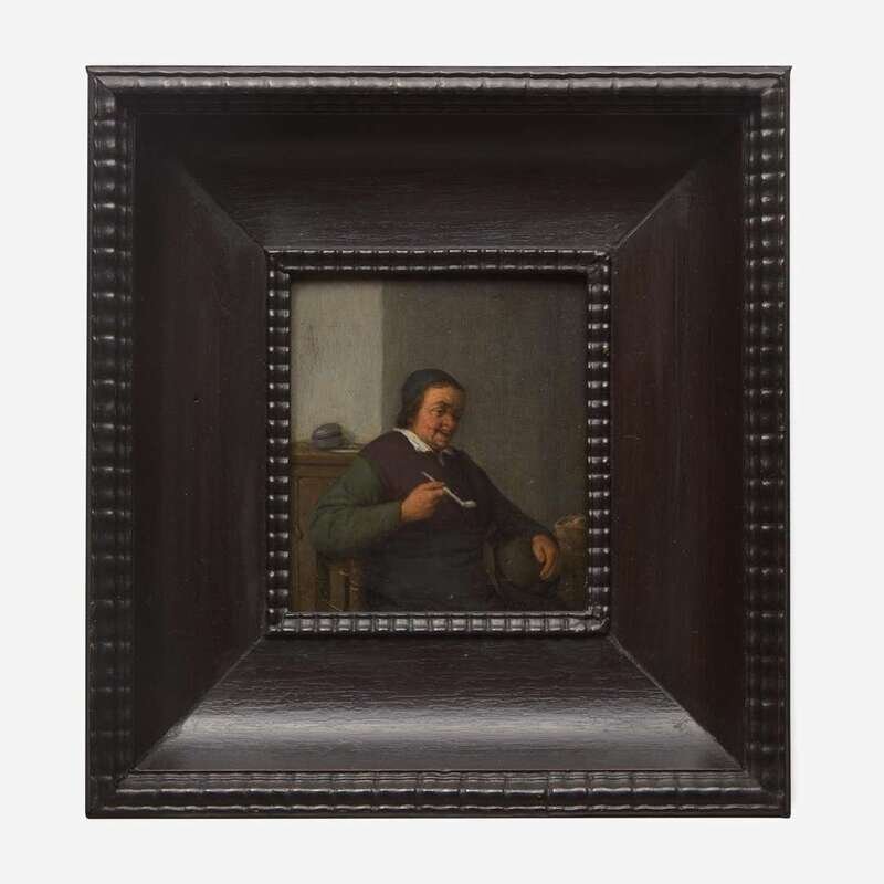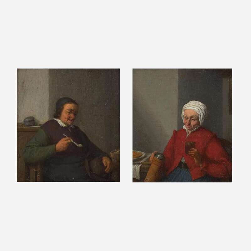 Adriaen Jansz van Ostade (Dutch, 1610–1685) Man Smoking in an Interior; together with Woman Holding a Jug and a Cup: A Pair of Half-Length Portraits