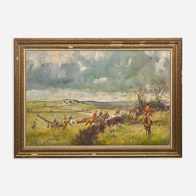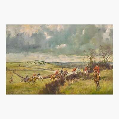 Michael Lyne (British, 1912–1989) The Fernie Near Cranoe - A Hunt from Caudle Church, Langton Tower on the Skyline.