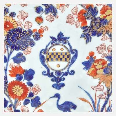 Decorated with the arms of Pitt, underside with double ring in underglaze blue with additional mark.