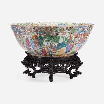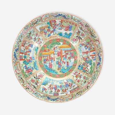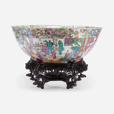 A Massive Chinese Export Porcelain Rose Medallion Punch Bowl 19th century